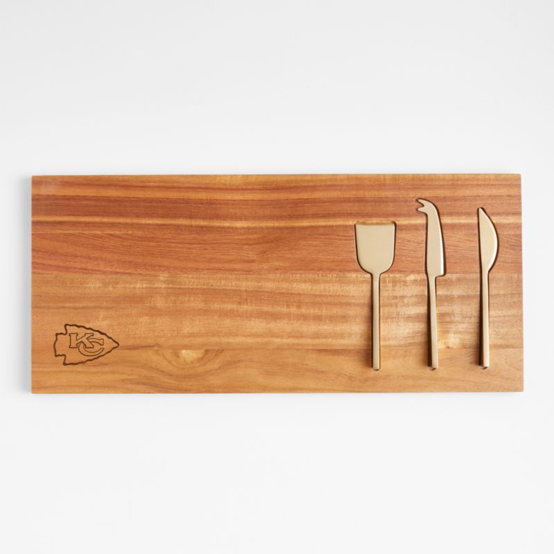 NFL Kansas City Chiefs Octavia Small Wood Serving Board With Cheese Knives