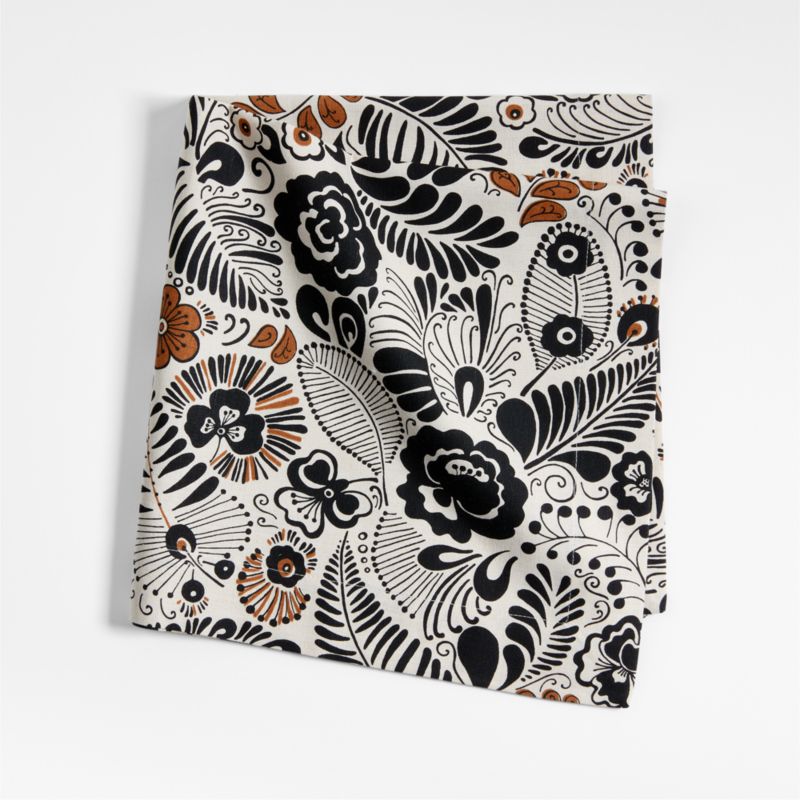 We love the magic trick our Nosara table linens pull: bold botanicals up close that read as a swirl of warm neutrals from a distance. Printed on a creamy blend of linen and organic cotton, the whimsical fronds and flowers bloom in black and sienna. The design evokes traditional paisleys while exuding fresh, modern energy. This floral napkin pairs particularly well with our artisanal dinnerware in similar hues.