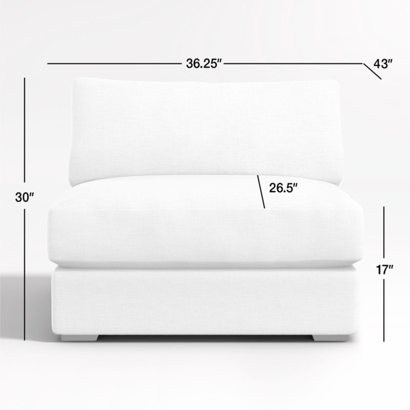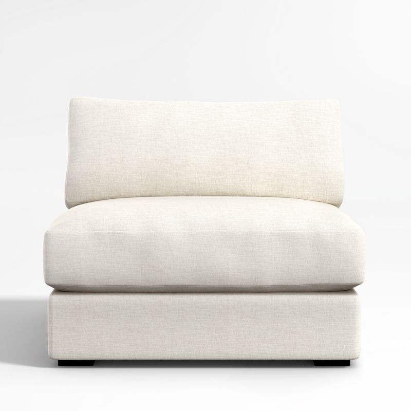 The modern ease of coastal living, no matter where you live. Our Oceanside sectional brings laid-back style to the living room with its clean lines, soft-yet-supportive cushions and ultra-wide arms for perching your drink or device. Scaled with an extra-deep and low seat, the armless chair is great for anyone who loves laid-back lounging and a low, modern look. And as your go-to place for lounging, you'll love Oceanside in our durable, family-friendly performance fabric. Combine the armless chair with other components to form an Oceanside sectional that's perfect for your space.