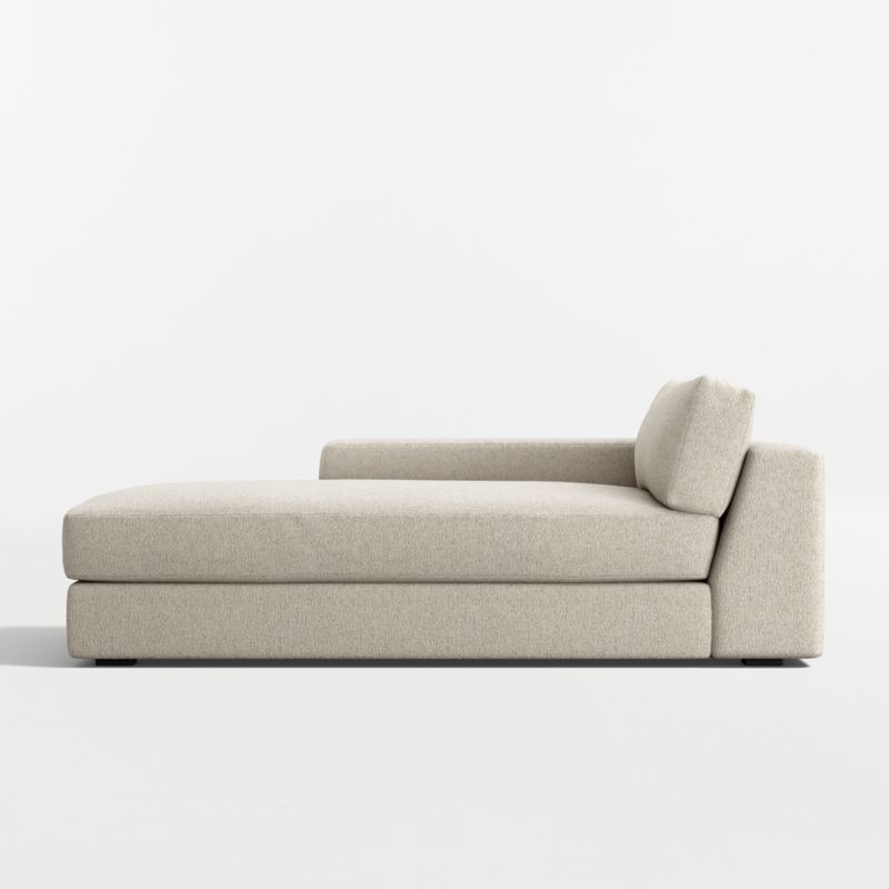 The modern ease of coastal living, no matter where you live. Our Oceanside sectional brings laid-back style to the living room with its clean lines, soft-yet-supportive cushions and ultra-wide arms for perching your drink or device. Scaled with an extra-deep and low seat, the left-arm chaise is great for anyone who loves laid-back lounging and a low, modern look. And as your go-to place for lounging, you'll love Oceanside in our durable, family-friendly performance fabric. Combine the left-arm chaise lounge with other components to form an Oceanside sectional that's perfect for your space.