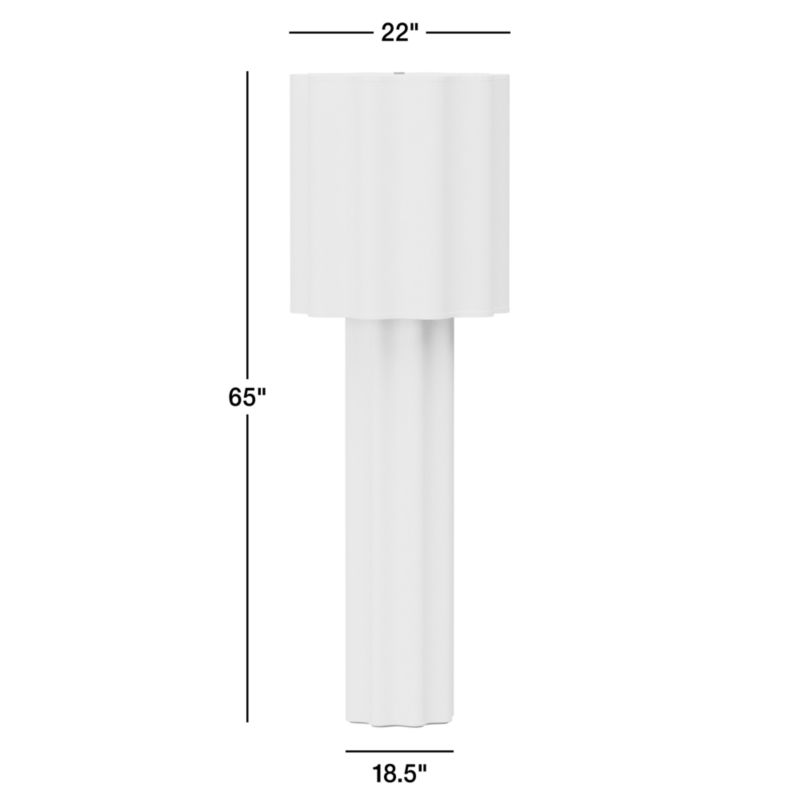 Inspired by vintage lamps and shades, our Ola floor lamp offers a contemporary take on a scalloped silhouette. Modeled with sculptural ribs, the lamp's curves are covered in warm white fabric and echoed in the matching shade. The rounded contours offer a continuous play of shadow and highlight whether the lights are on or off.