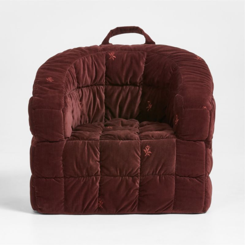 Meet the Barrel Chair, a sought-after silhouette for grown-up spaces, now sized for kids! This cover designed by Jeremiah Brent features embroidered leaves scattered across an organic cotton velvet surface—for a look that's both luxe and lighthearted. With just enough bounce and sized just right, the comfy chair has a frameless foam design that holds its shape through plenty of play and is a breeze to put together. Perfect for family game nights or morning cartoons, the chairs are easy to tote around thanks to the handle up top. Pro parent tip: The zippered cover is easy to remove and toss in the wash.
