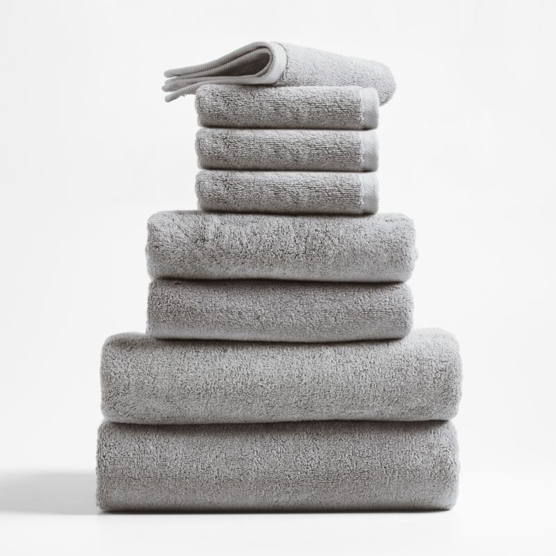This set combines a full-suite—four washcloths, two hand towels and two bath towels—of luxurious Turkish organic cotton towels in classic grey at a great price. Extremely plush, dense and incredibly soft, the towels are made of double-ply organic cotton threads to ensure strength and durability. Each towel is woven with a looped rather than tight construction to dry quickly and with an intricate herringbone dobby weave along the border for a bit of elegant detail. Washing will only make these exceptional textiles more absorbent and soft.
