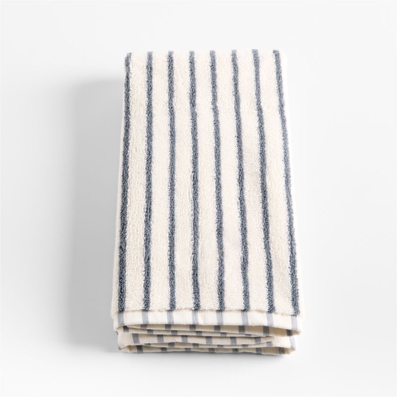 • View Organic Turkish Cotton Pampas Ivory and Evening Blue Stripe Hand Towel - image 5 of 7