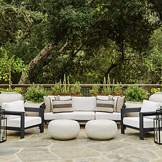 Entertain your guests with cozy and comfortable outdoor furniture sets and collections. For a modern look, opt for the Dune Outdoor Furniture Collection. From sleek silhouettes to contemporary stainless steel framing, Dune outdoor furniture sets make for a stylish and modern living room. To create a cohesive seating arrangement for your guests, consider pairing a blue patio sectional with a matching outdoor patio table and chairs. Or, create an edgy vibe in the backyard with dark-hued outdoor patio furniture. Situate a pair of grey patio chairs side by side on one half of the deck, while positioning a set of black outdoor dining chairs and loungers on the opposite end.