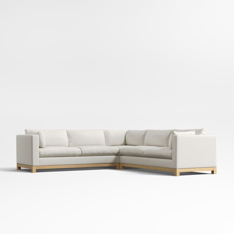 Long, low and made for lounging, our Pacific sectional complements contemporary living rooms with its easy, breezy style. Sustainably sourced wood with a light finish anchors the three-piece sectional—a corner and left-right-arm sofa—with square legs and a full rail. Along with pillowy back cushions and supportive bolsters, the bull-nosed seat ensures a comfortable stay with medium-density, not-too-deep cushions. You'll love the sectional sofa upholstered in Olef, a 100% recycled fabric with subtle textured slub and marled yarns.