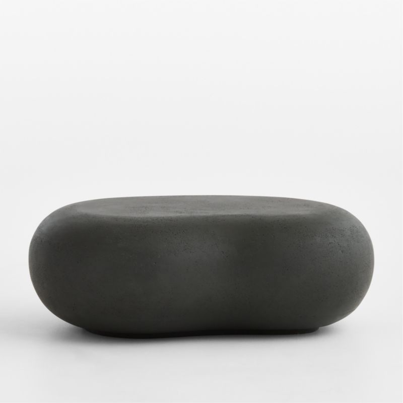 Cement finds its sculptural side in our Pebble coffee table. The organically shaped table made of a mix of cement, fiberglass and sand resembles a black river rock burnished smooth and sleek. Don't be surprised to discover intriguing pin holes, mold impressions, water spots and color swirls that are desired qualities inherent to the curing process. Sized a bit smaller, the indoor/outdoor table is perfect for apartments and balconies.