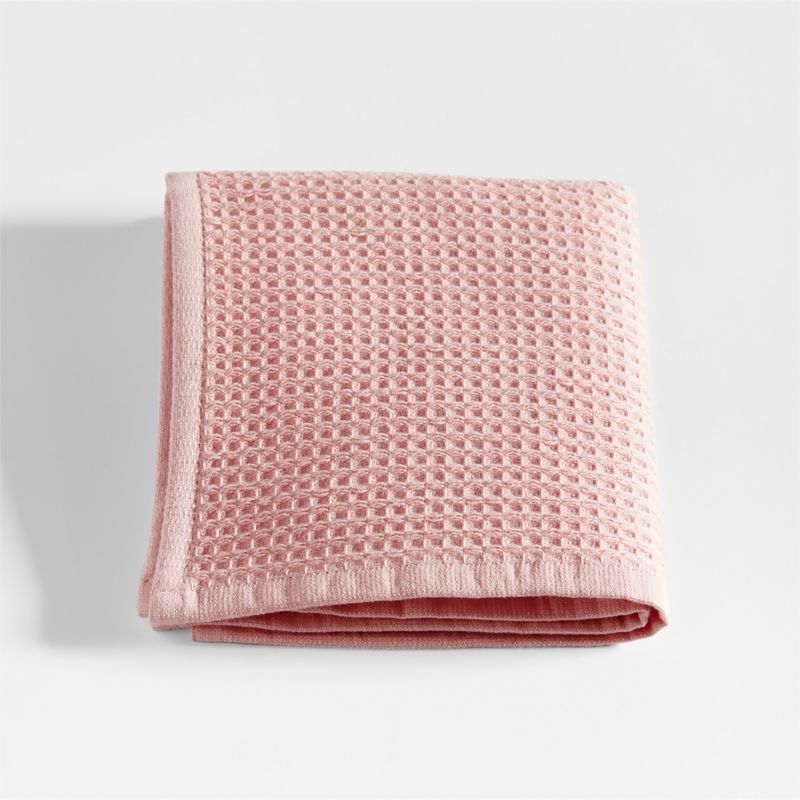 Uniquely textured with a waffle weave on one side, terry on the other, our organic cotton towels are exceptionally gentle on sensitive skin. The washcloth offers cozy softness and impressive absorbency. Give the entire bath the waffle-weave look with the matching hand towel, bath towel and shower curtain, all in light grey.
