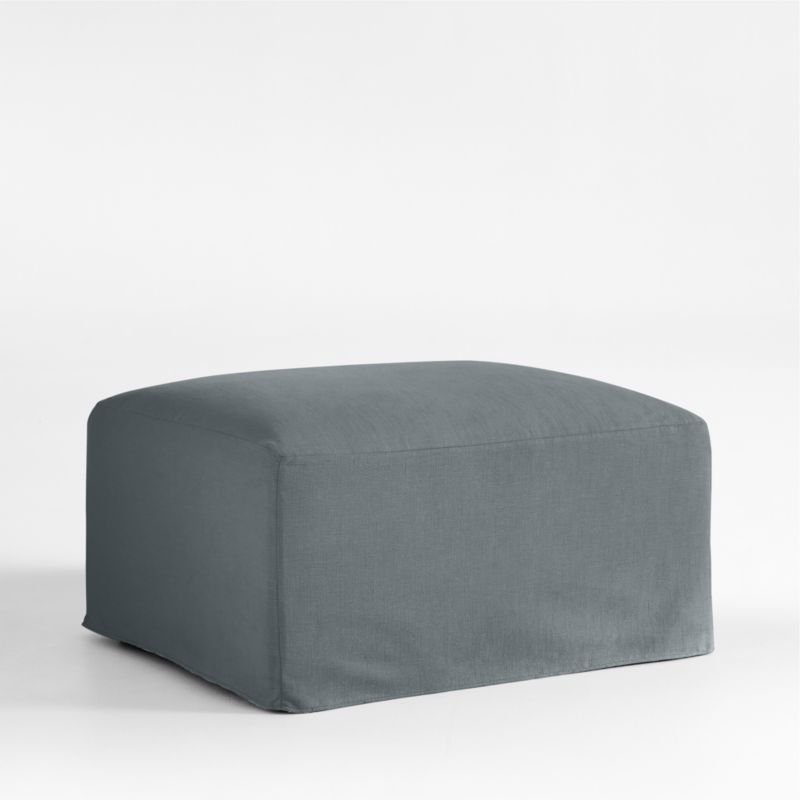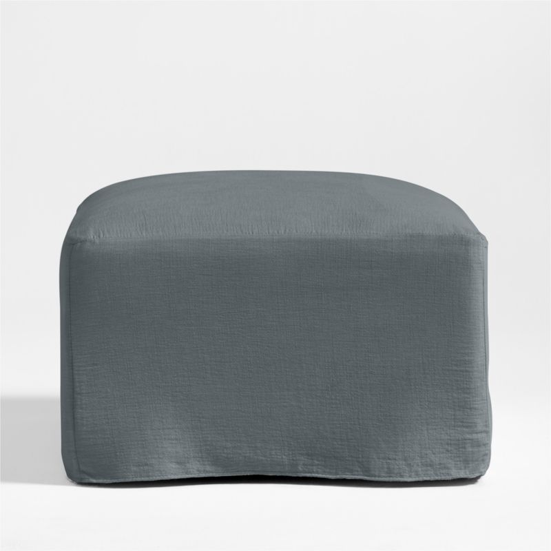 Put your feet up—you might be here awhile. Our Piper Slipcovered Nursery Ottoman features a generously sized, supportive surface for relaxing during marathon feeding or reading sessions. Its blue slipcover is made of a gauzy cotton-linen blend that has a breezy sensibility and pairs perfectly with our Piper Glider.