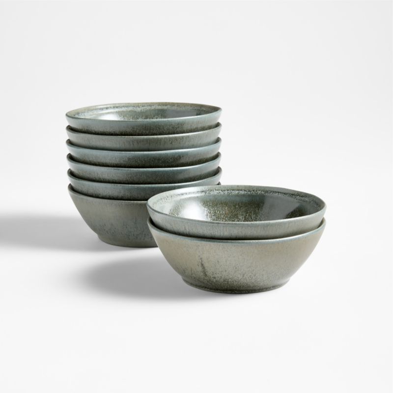 Reactive glaze and organic shapes give our Prairie dinnerware collection its straight-from-the-ceramics-studio appeal. The bowl provides generous surface area to show off the glaze's capricious nature, making each piece a masterpiece in mossy green or earthy cream tones. Designed to work in one colorway or mixed together, the set of eight Prairie bowls enlivens everyday meals or sit-down dinners with artisanal flair.