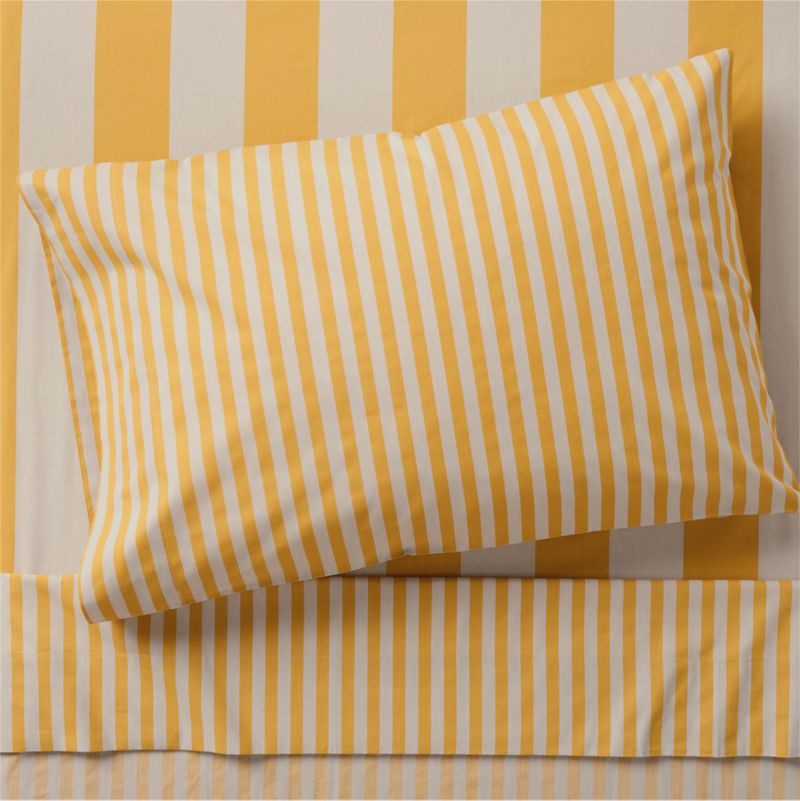 Riviera Savannah Yellow and Oatmeal Reversible Stripe Organic Cotton Kids Pillow Sham