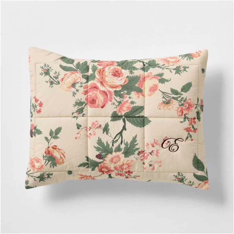 For our Rose Meadow bedding, designer Louise Roe was inspired by the English countryside (you can practically imagine a flock of sheep outside the window). The pillow sham showcases a floral and blackberry bramble chintz in warm peach and buttery tones, accented by a classic quilting pattern. Have it monogrammed for an extra special touch, and pair it with the matching comforter for a coordinated look.