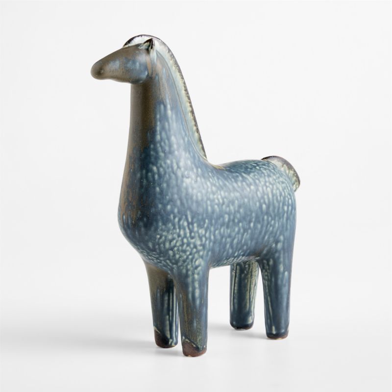 We're enamored with these majestic-yet-charming horse sculptures. Reactive glazes in ocher yellow, dark brown and chalky white coat the earthenware equines, while hand-applied textures enrich their organic looks. Our small and large Rouen sculptures look regal on their own or displayed in a pair on a bookcase, mantel or sideboard. Due to the reactive glazes and handcrafted techniques, each horse is one of a kind.