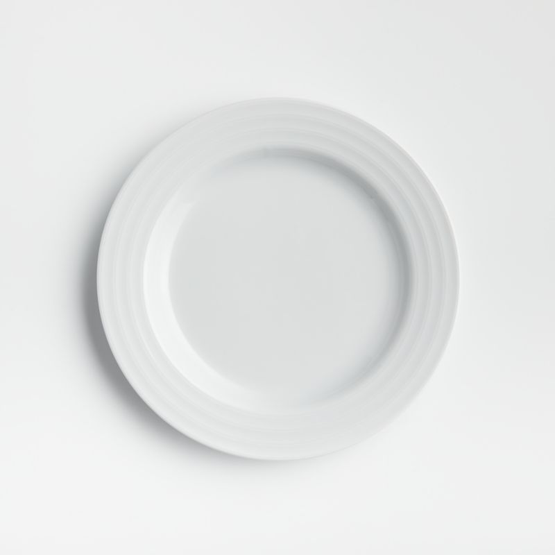 Designed by Martin Hunt of Queensberry Hunt, Roulette dinnerware has been a top-selling Crate and Barrel favorite since the pattern was introduced in 1992. Crafted of durable, pure white porcelain, Roulette features subtle concentric circles that create an eye-catching rippled effect. Mix and match with our Roulette Blue Band dinnerware.