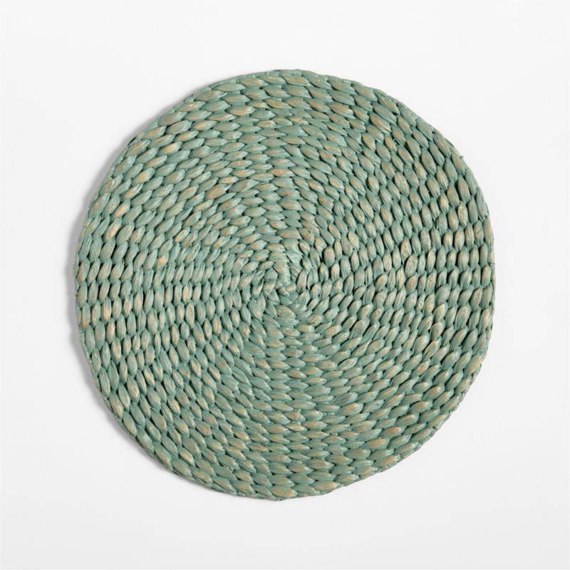 A soft grey finish adds subtle color to this round placemat handwoven of natural water hyacinth fibers. Created by skilled artisans, our beautifully woven placemat brings warmth and natural appeal to modern organic dining tables, tropical outdoor dinner parties and cozy holiday tablescapes.