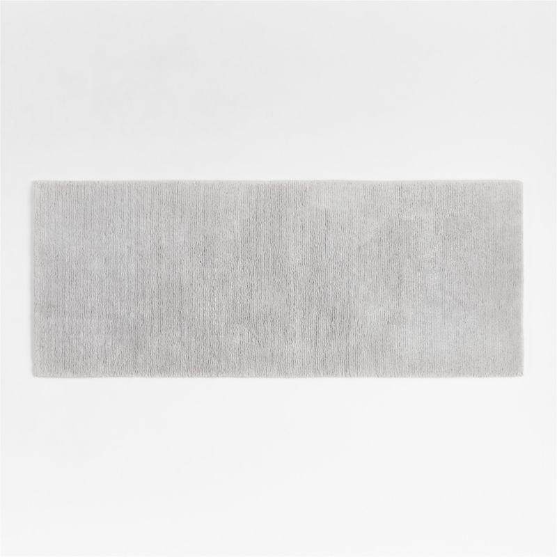 Sink into plush, sheared-pile cotton on one side of this silvery grey reversible bath mat, or flip it over to enjoy the textured ribs on the other side. Skill artisans tuft the exclusive ultra-absorbent, ultra-luxurious and ultra-durable by hand. Crafted of pure organic cotton in a serene hue, our reversible bath rug indulges in spa-like comfort underfoot.