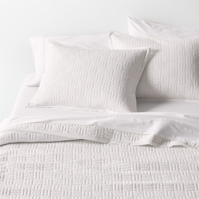 For an ultra-sophisticated yet supersoft sleep, our new Serene makes the bed with silky organic cotton sateen. The lustrous fabric feels cool to the touch, while the lightweight fill makes this quilt perfect for layering (and gives it a graceful drape). A basketweave stitch offers a modern take on quilting, giving the bedspread a clean, linear look that's still plenty cozy. The luxurious washed fabric, lightweight fill and tranquil hue make the quilt ideal for year-round use, especially paired with the other satiny smooth bedding in our Serene collection.