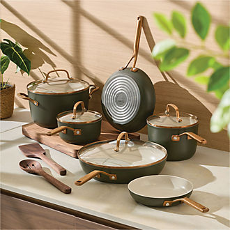 - KitchenAid Cookware: Go from the countertop to the stovetop with KitchenAid cookware. Choose from eye-catching stainless steel or non-stick ceramic pots and pans to suit your preference. Then, fill out your gadget drawer with KitchenAid products such as kitchen utensils and colanders.