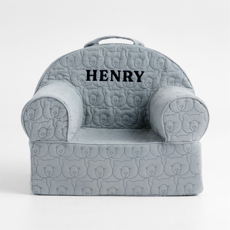 • View Small Mist Blue Organic Cotton Quilted Bear Kids Lounge Nod Chair - image 1 of 7