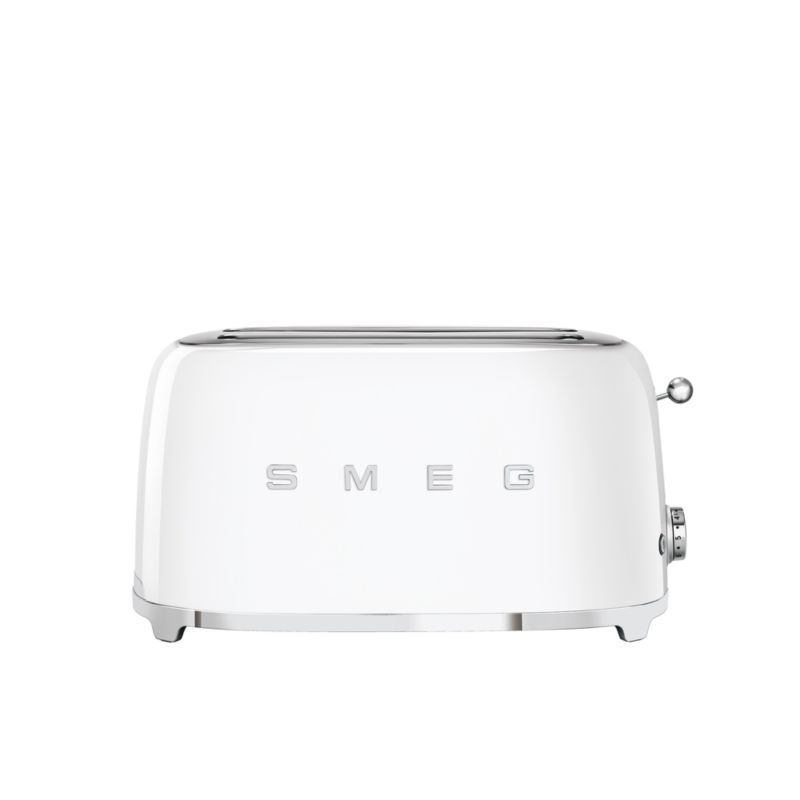 Enameled in bright white and accented with a charming ball lever knob, this retro long-slot toaster browns artisan bread, bagels and more at six levels with three convenient pre-set programs. Two extra-wide, extra-long slots accommodate all of your favorites, whether you're toasting four slices of sandwich bread or two slices of artisanal ciabatta.