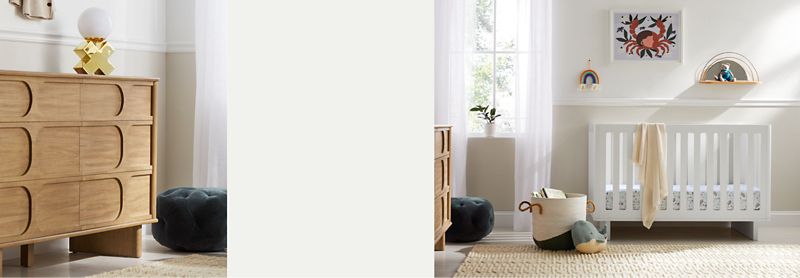 Calming whites + naturalwood grain + cool color pops = an effortlessly elevated palette.