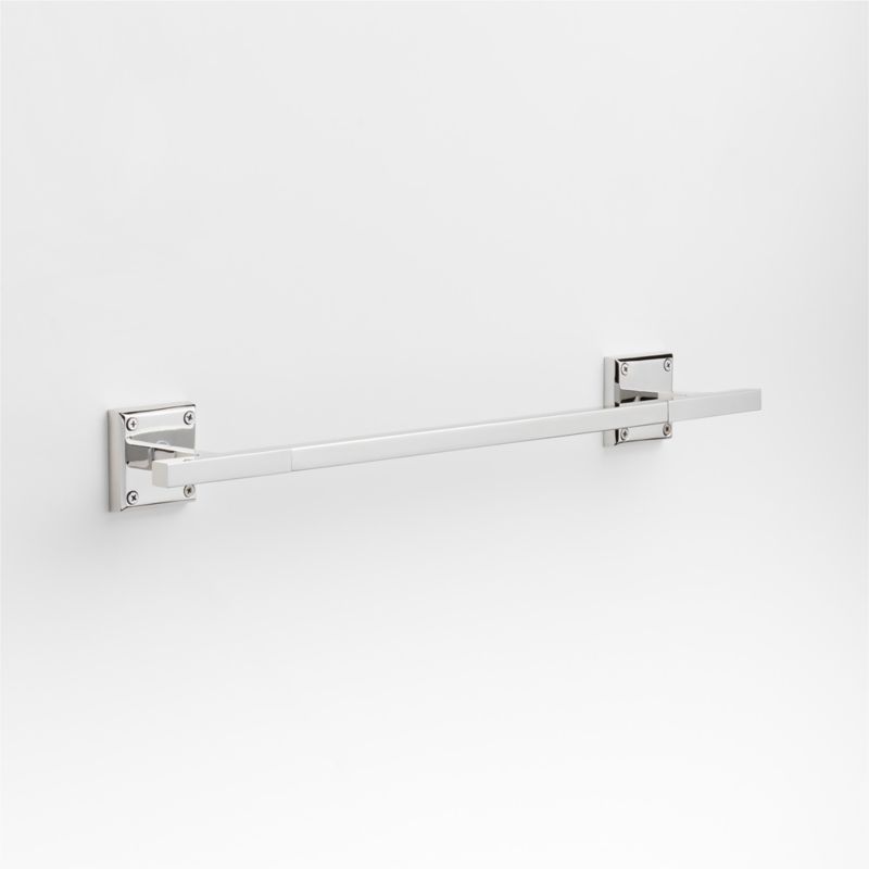Sometimes it's the small things that pull a room together. That's why we've designed a hardware collection with modern silhouettes, clean lines and a touch of tradition to give your bathroom that perfect finishing touch. Rounded corners and smoothed edges soften the minimalist design of the square towel bar and wall plates made of brass with a polished chrome finish. The 18-inch towel bar mounts easily to the wall with included hardware.