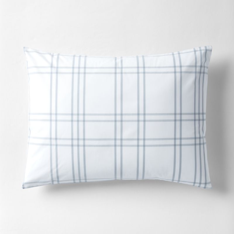 Sewn of pure organic cotton for superior comfort, beauty and strength, our Stax kid's bedding adds a level of coziness that's hard to beat. Straight grey-blue stripes crisscross over a bright white background to form a grid pattern that keeps the bed looking neat, tidy and always in line. Pair the sham with our coordinating Stax duvet cover.