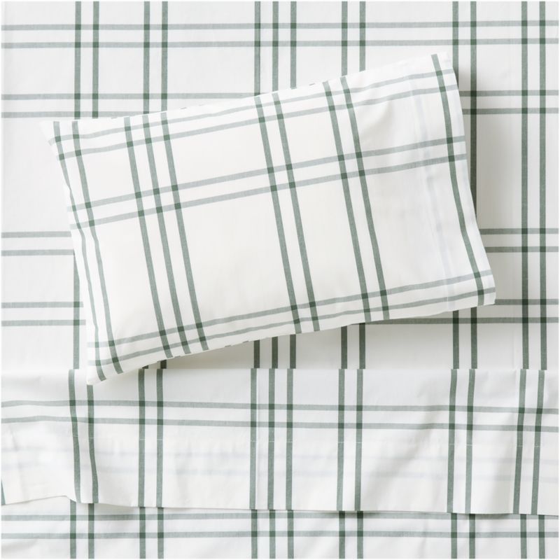 Sewn of pure organic cotton for superior comfort, beauty and strength, our Stax toddler bedding adds a level of coziness that's hard to beat. Straight pine green stripes crisscross over a pampas ivory background to form a grid pattern that keeps the bed looking neat, tidy and always in line.