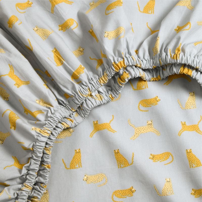Screen-printed wild cats leap, sit and snooze away adorably across our Little Leopards Crib Fitted Sheet. The cool, crisp organic cotton percale has great breathability and gets even softer with every wash. While the sheet's yellow and mist blue hues pair well with just about any nursery decor, we love pairing it with our Little Leopards quilt and changing pad cover for a coordinated cub's den.