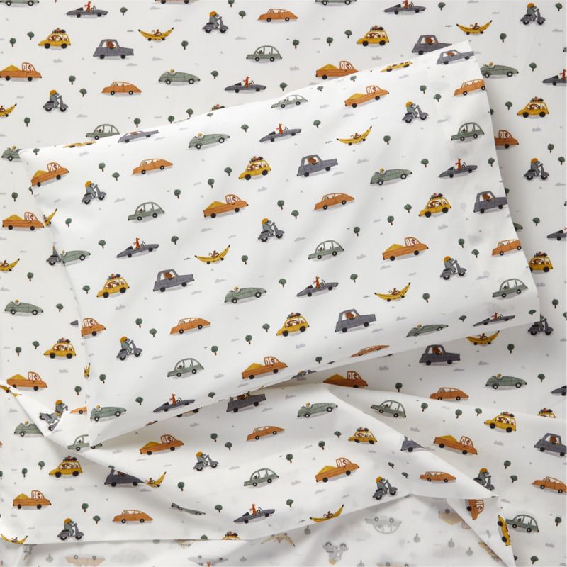 Little ones will love cruising into bedtime with this playful print featuring lions, giraffes, zebras and other friendly animals zooming around in fun, fanciful vehicles. (Yep, there's even a monkey driving a banana!) The dreamy, supersoft organic cotton is breathable and oh-so cozy. And the muted color palette is designed to work with a variety of nursery designs. Pair with our coordinating Transportation Organic Cotton Crib Quilt for a cohesive look.