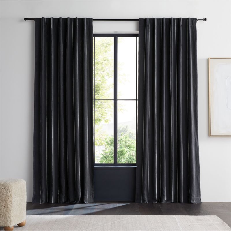 Storm Grey & Crisp White Linen Double Pinstripe Window Curtain Panel 52"x84"