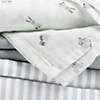 Our swaddle blankets have a Goldilocks effect on babies: The soft 100% organic cotton gauze helps regulate their temperature to keep them cool in warm weather, warm during colder days, and snuggly and secure year-round. Our handy set includes three swaddles (because, trust us, you're going to be reaching for these again and again) in solid mist blue, a blue and ivory stripe and a hand-drawn baby animal print. All of them coordinate with our Baby's first crib sheets and changing pad covers.