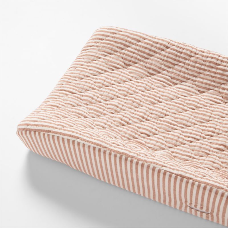 Make changing time comfy and cozy with our Supersoft striped changing pad cover. A double-layer weaving technique creates pockets of air that hold warmth, while the quilted diamond pattern provides a little extra comfort. Added bonus: The organic cotton gauze gets softer and fluffier after each wash. Complete the look with our coordinating Supersoft striped crib sheets.