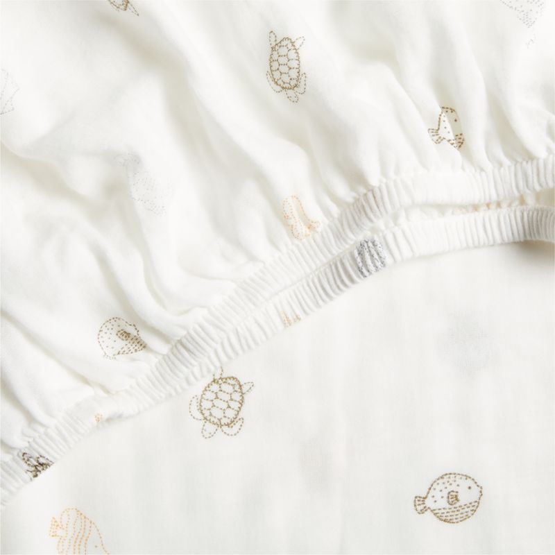 Make a splash with our Sea Dreams Crib Fitted Sheet, with its dreamy, muted color palette on an ivory background. Sweet sea creatures take little ones along for an underwater adventure on bedding made of ultra-cozy and breathable organic cotton gauze. Pair with our matching changing pad cover and quilt for a coordinated look.