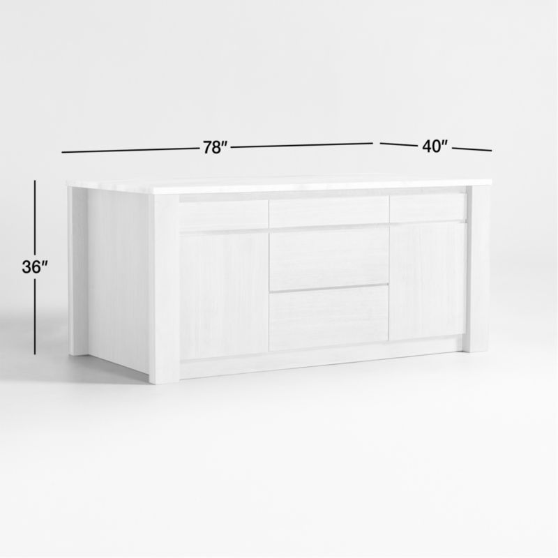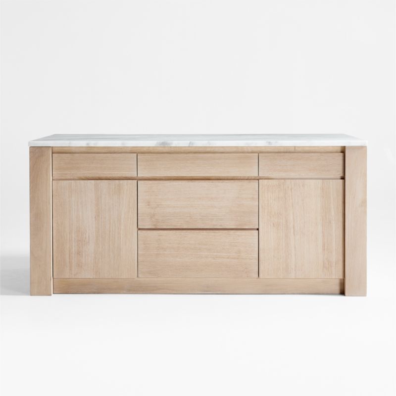 Terra 78" Marble Top and Natural Oak Wood Kitchen Island with Storage