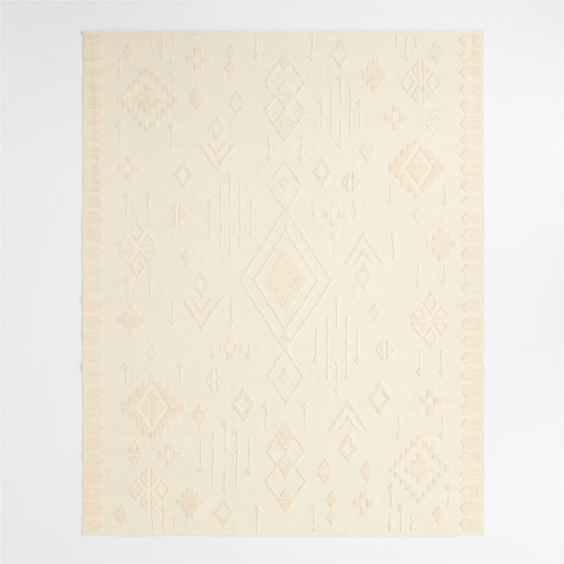 Make a graphic statement in your kid's favorite spaces with this striking rug in a handwoven, texture-rich geometric design. Raised tone-on-tone patterns in contrasting weaves give this rug beautiful dimension and depth. In a serene ivory hue, the rug's wool-cotton blend is highly durable and more resistant to stains than other materials, making it a natural fit for the most active, well-loved spaces in your home?from the playroom to the nursery and beyond.