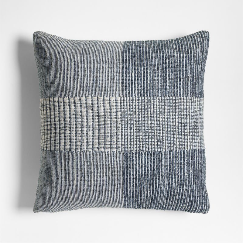 A variety of weaves create textured, tonal stripes on this effortlessly chic pillow. Recycled fibers in blue and ivory weave the elevated design, banded by a central ribbed stripe. Durable enough for your porch and patio with living room-worthy style, our square pillow instantly refreshes your furniture indoors and out.