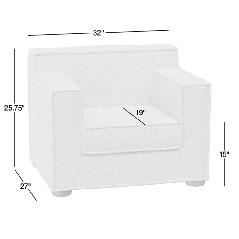 Time and again, you'll find your child curled up in this cozy little accent chair, quietly reading or playing. With the scaled-down design of a classic club chair and soft yet durable sherpa upholstery, our Tucker Chair by Jeremiah Brent is an irresistibly inviting seat—and it will seamlessly transition from nursery or playroom to big-kid room as your kids grow. Round wooden feet give the chair an extra dash of personality.