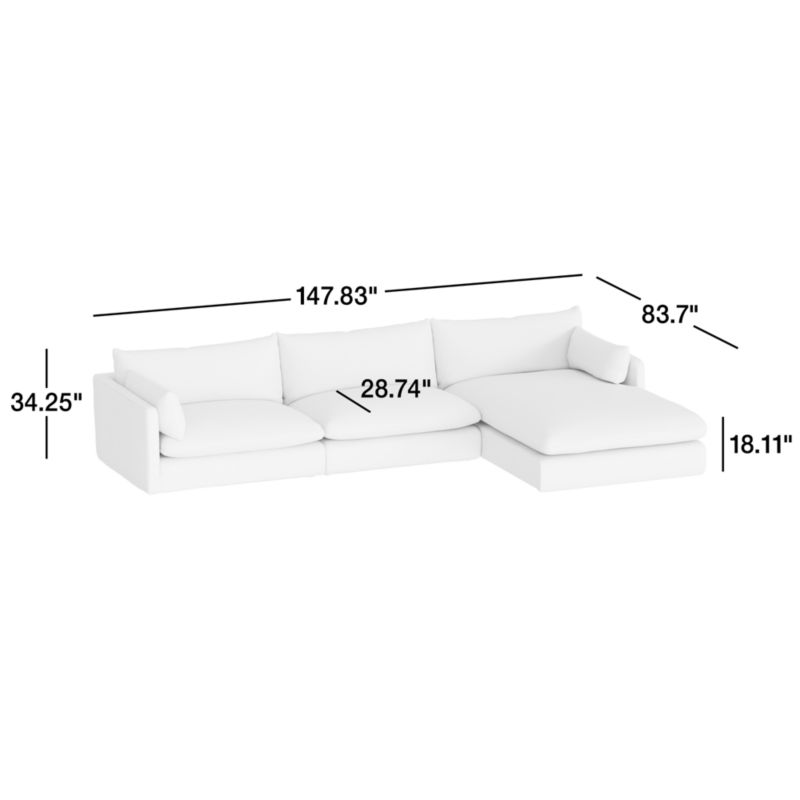 Unwind Modular 3-Piece Slipcovered Sectional Sofa with Chaise Lounge26height147.83width83.7depthMeasurements are in inches.66.04height375.49width212.6depthMeasurements are in centimeters.