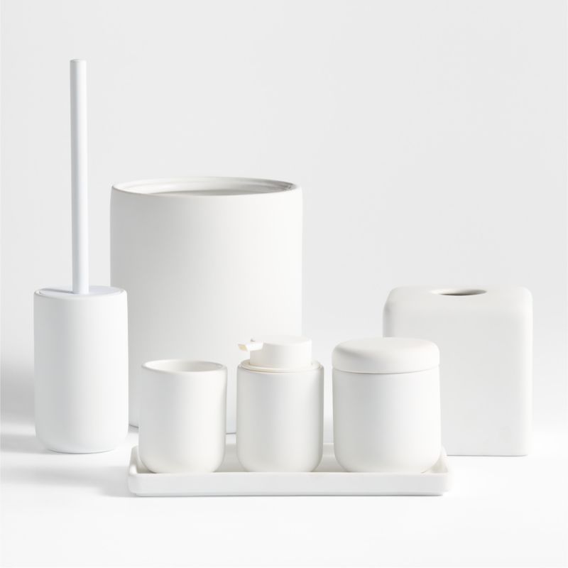 Our Varick bathroom collection dips sturdy ceramic in white soft-touch silicone that feels soft and luxurious. The gentle, minimalist curves and compact scale suit even the smallest powder room, guest bath or en suite. Our Varick accessories outfit bathrooms to create serene sanctuaries that are ready for company.