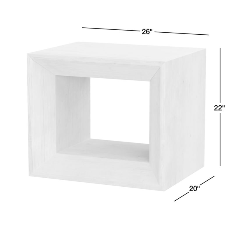 Like a picture frame, our Vernon side table uses mitered corners and angles to bring focus to the beauty of natural wood. Made of sustainably sourced pine with a dark ebonized finish, the geometric side table uses a reverse bevel edge to create the open square frame. A single drawer is cleverly mitered into the frame to keep the look seamless. Light wire brushing lends texture to the wood while highlighting the wood's striking cathedral and quarter-sawn graining. The Vernon side table is a Crate & Barrel exclusive.