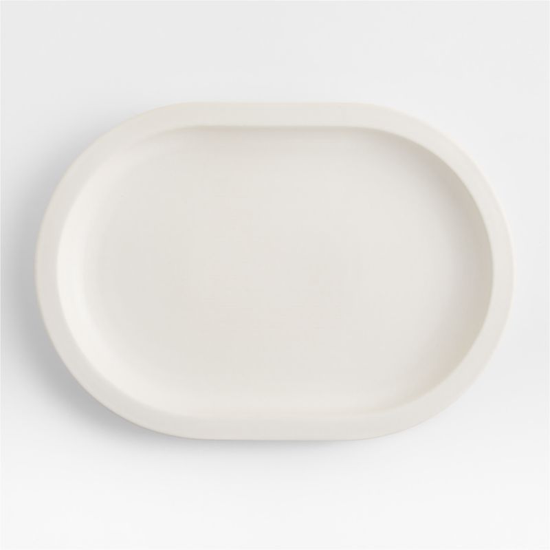 Rustic, modern and Mediterranean, our Villa collection was inspired by the casual dining experiences our designers enjoyed on a sourcing trip to Portugal. Matte glazes in a palette of soft, calming earth tones coat stoneware dishes hand shaped by Portuguese artisans. Subtle wheel marks and the reactive glazes create subtle textures unique to each piece. Finished in warm white with a smattering of speckles, this oval serving platter boasts a wide rim that corrals roasted meats, vegetable kebabs and sliced bread for a timeless-yet-fresh presentation.