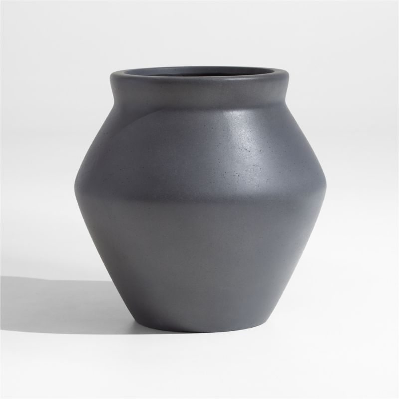 Resembling traditional storage jars, our Wabi planter streamlines a classic shape for a look that's clean and contemporary. The slate grey planter's rounded bicone shape suits container plantings of flowers and trailing greens and lends modern refinement to patios, decks and balconies. Made of a mix of cement, sand and fiber, the small planter—also available in medium and large—is lightweight, durable and frost-resistant.