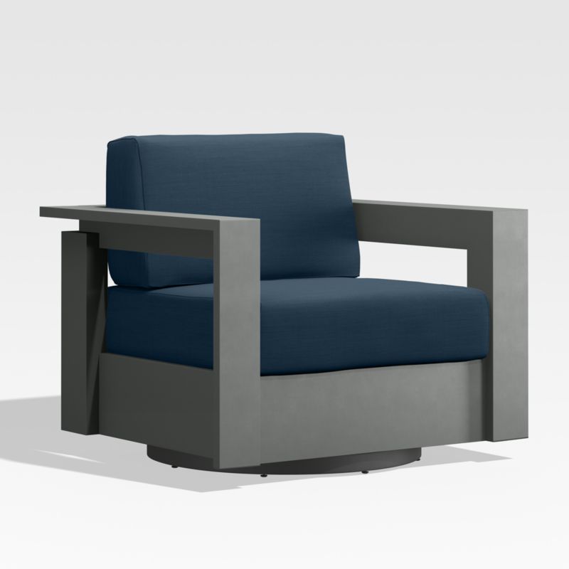 Walker Metal Outdoor Swivel Lounge Chair with Cast Harbor Blue Sunbrella ยฎ Cushions29height36.25width33depthMeasurements are in inches.73.66height92.08width83.82depthMeasurements are in centimeters.