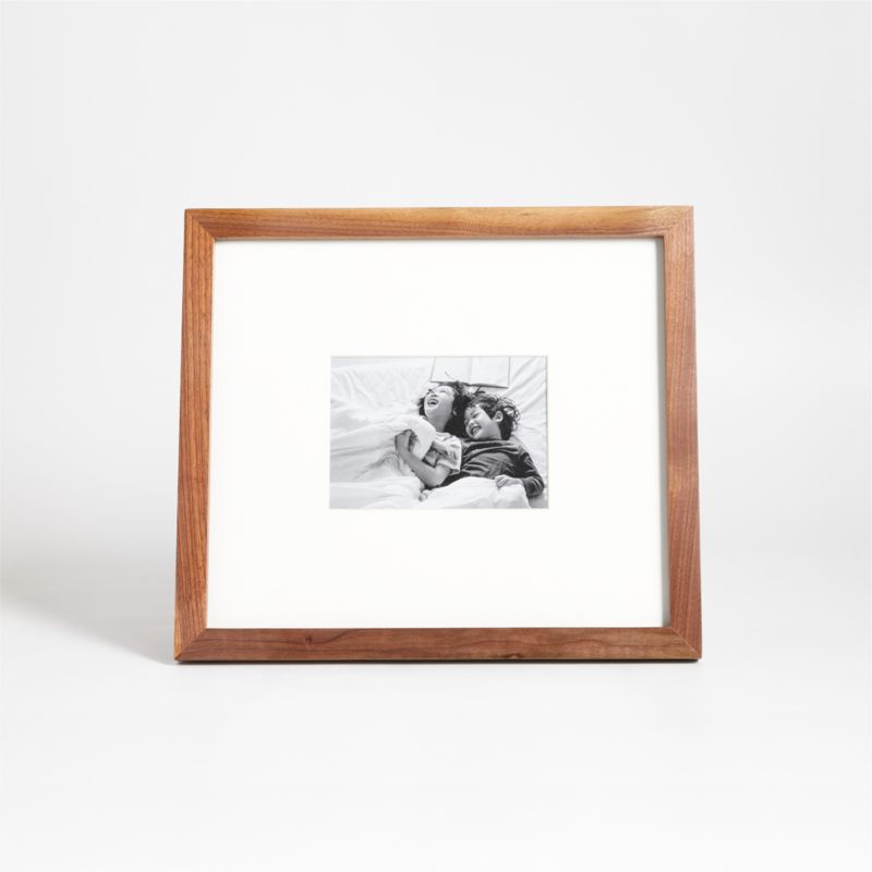 Our solid walnut frame adds organic warmth to photo displays with its rich hue and off-white mat. A Crate & Barrel exclusive, the clean-lined walnut wood frame allows beloved prints and photographs to shine.