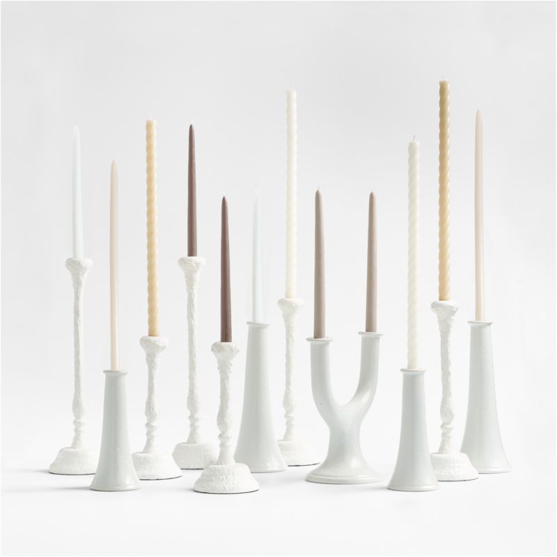 Keep this set of 12 taper candles on hand to elevate any gathering with the glow and charm of candlelight. We've included six pairs of tapers in a goes-with-everything palette of warm neutrals. Choose from 12-inch tapers in mink beige, suede and white, 18-inch tapers in oat, and 18-inch twisted candles in white and oat.