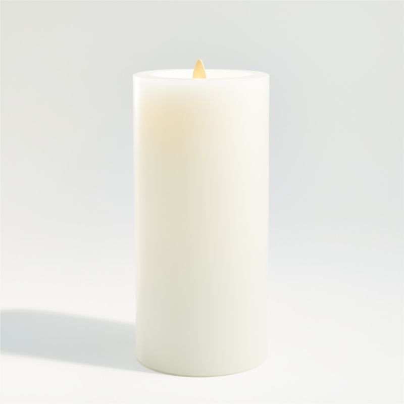 Our flameless candle fools the eye with its lifelike flickering, warm glow and charming faux flame dancing atop a real wax pillar. Safe and mess-free, the tall white candle creates atmosphere and gentle illumination on the nightstand, next to the bathtub or anywhere a burning candle would be impractical. Use the remote control (sold separately) to turn the pillar on, or set the timer for five automatic hours of delightful and worry-free candlelight every evening.