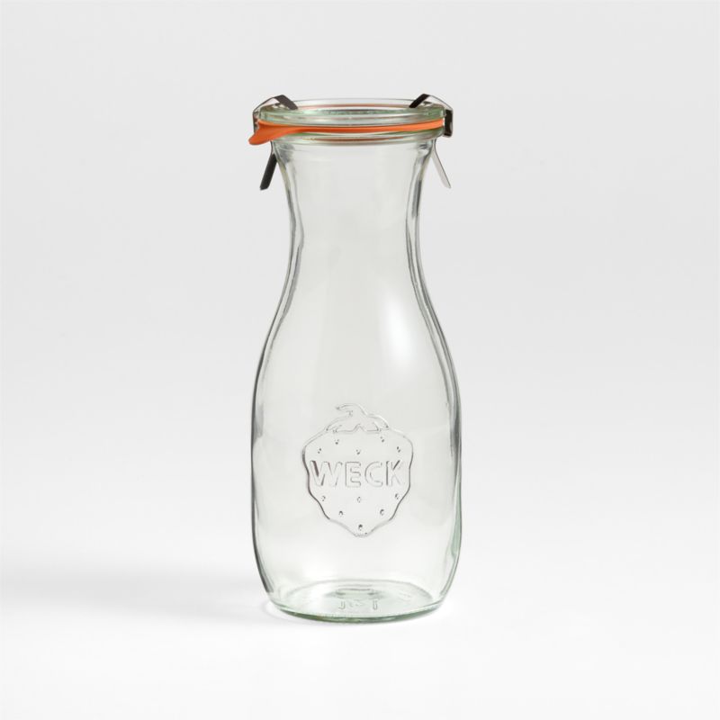 The classic Weck juice jar is a great choice for serving fresh-squeezed orange juice, chilled water, batch cocktails or homemade syrup. The wide-mouth, clear glass container is easy to fill, and the curved shape is comfortable to hold. A glass lid easily secures with a rubber ring and two metal clamps for a tight seal.
