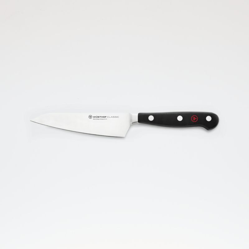 Add to your cutlery collection with classic Asian-style utility knife. Featuring a uniquely curved straight-edge blade, the knife can be used as a mini chef's knife or paring tool. Use for cutting, dicing and slicing small- to medium-sized fruits, vegetables and cheese, or for trimming poultry and meats.