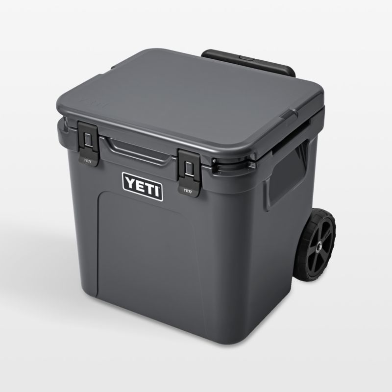 Outfitted with wheels and a retractable handle, this built-tough cooler goes wherever you do. Designed to pack more in while taking up less room, the charcoal grey cooler stores up to 76 cans or 54 pounds of ice, locking in the cold and keeping everything neat and tidy. It's also tall enough to store upright bottles of wine or soda containers. The periscoping handle is extra strong for extra-heavy loads, and tie-down slots enable the cooler to easily attach to a boat or trailer so you can bring refreshment on any of your on- or off-road adventures.
